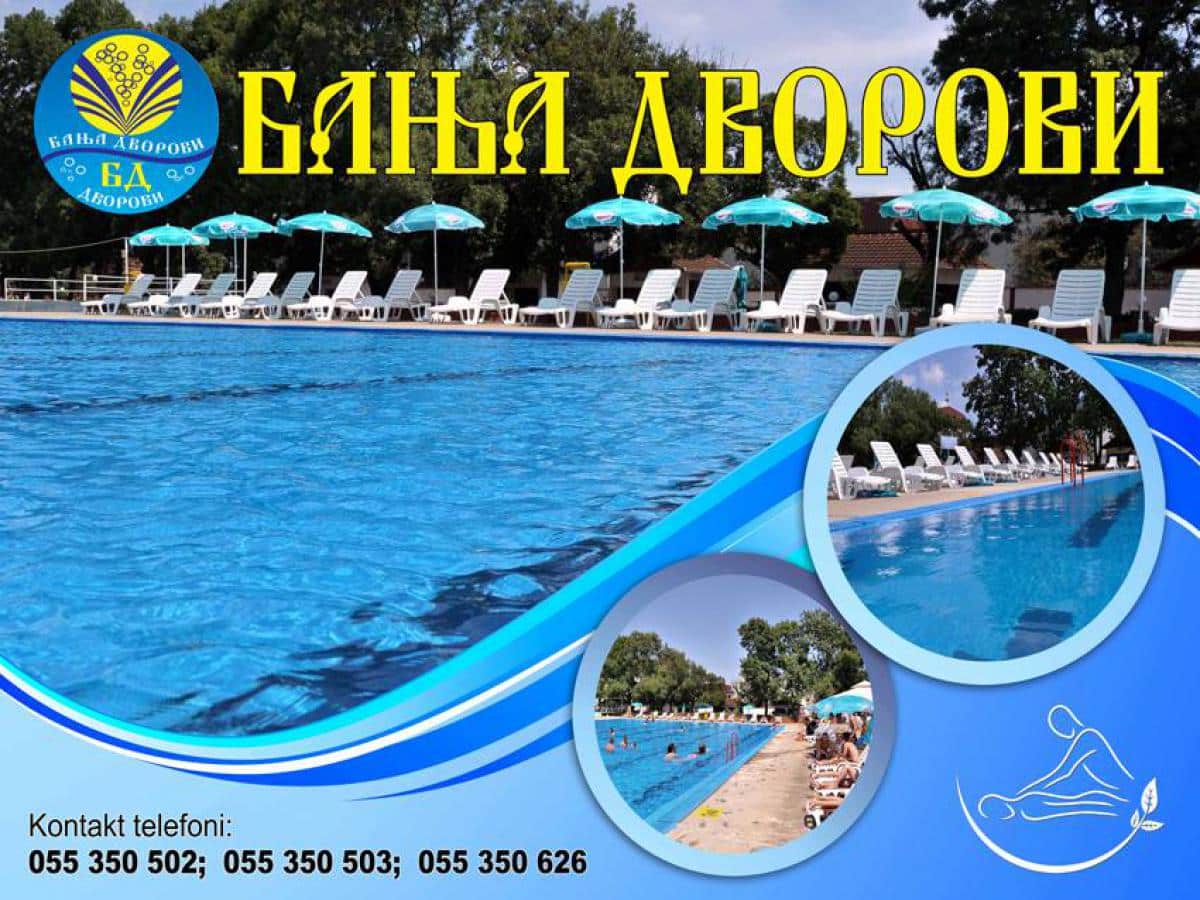 Spa Banja Dvorovi is a spa-recreational center where medical services are provided throughout the year, and tourist and hospitality services are provided mainly during the summer. The water is sodium-calcium hydro-carbonate chloride, and analysis has shown that its use gives very good results in the treatment of chronic rheumatic diseases, post-traumatic limb injuries, some forms of eczema, lumbago, spondylosis, spondylitis, etc.